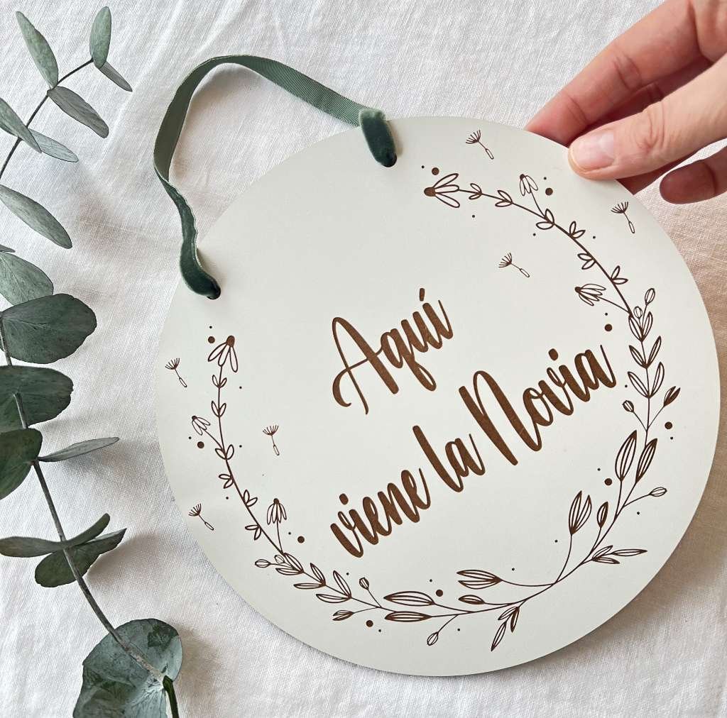 ¡Dale a la novia la entrada triunfal que se merece con nuestro encantador cartel de Aquí Viene la Novia! Este hermoso detalle es la manera perfecta de anunciar la llegada de la novia y llenar el ambiente de emoción y anticipación en cualquier boda.
