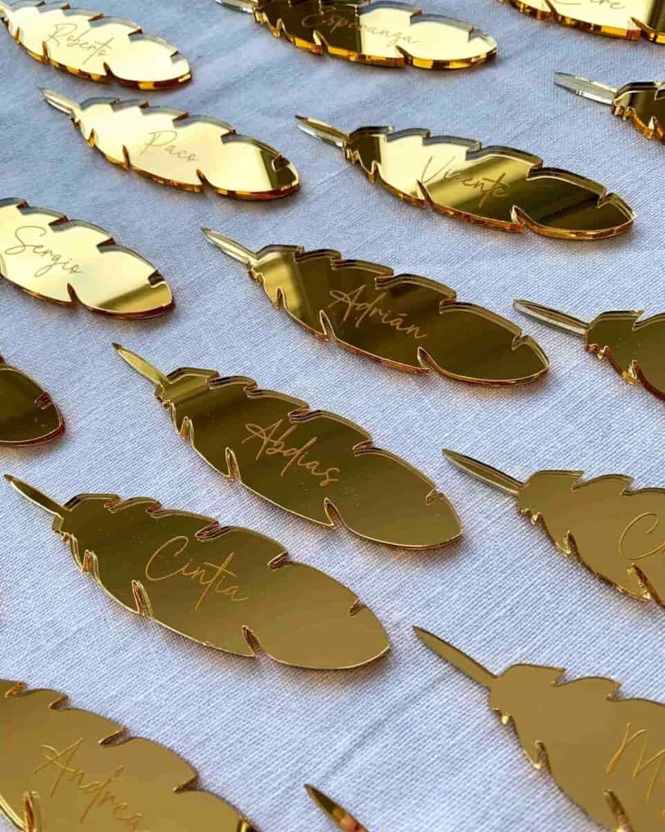 Eleva la elegancia de tu boda con nuestros marcasitios de estilo pluma