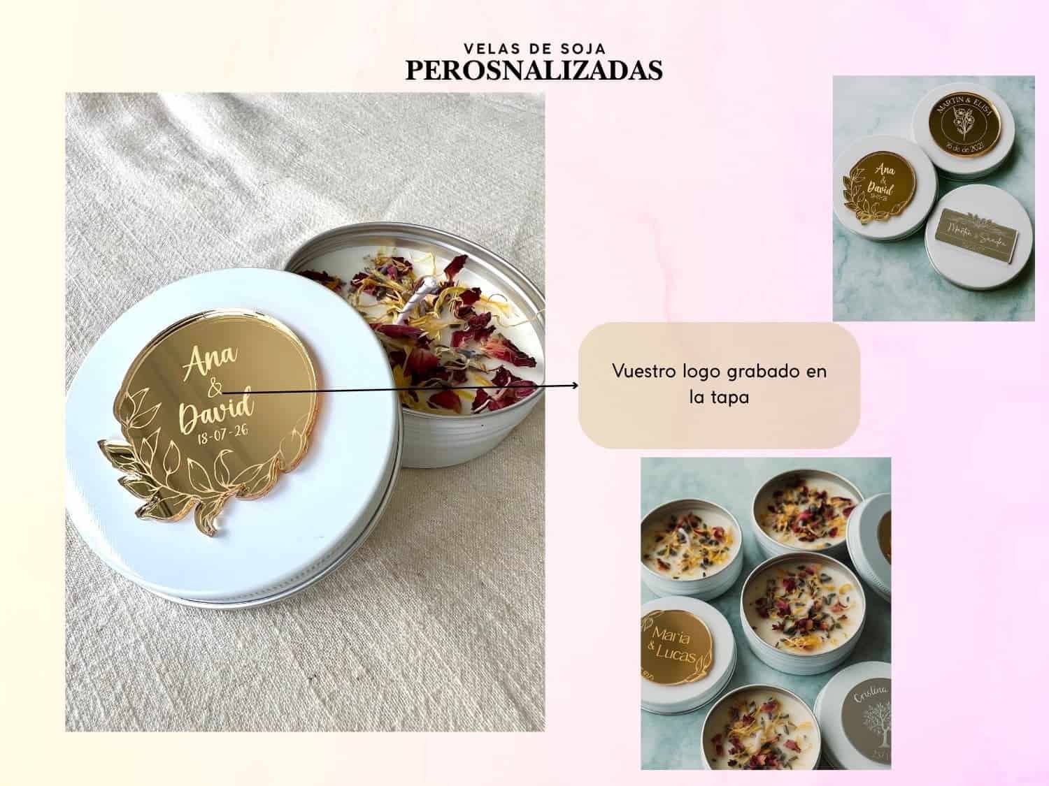 Velas de soja biodegradables con flores preservada, personalizadas